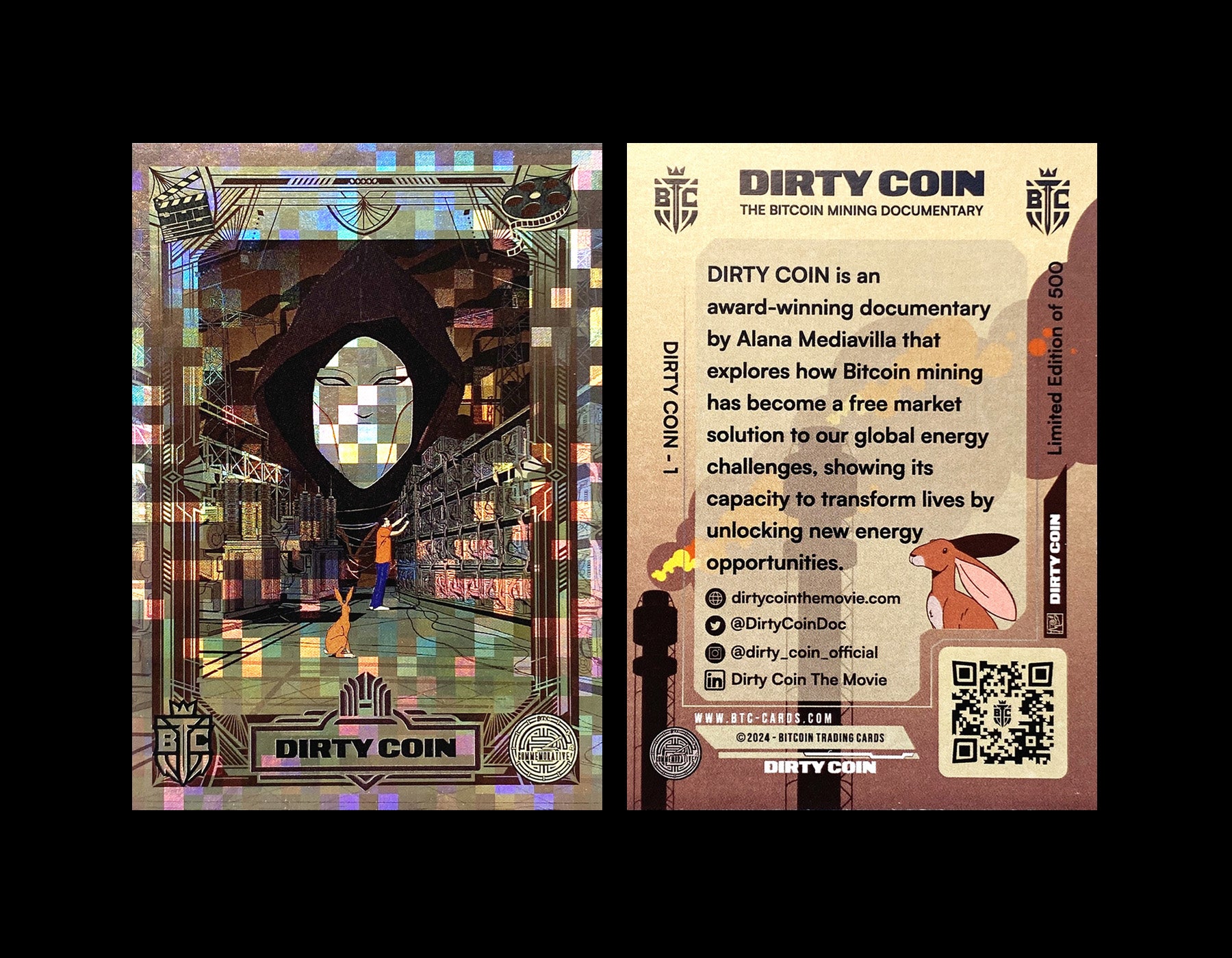 The cards have a holographic foil finish on the front, and details on the back. A rare piece of Bitcoin history for DIRTY COIN supporters. Shipped in protective packaging.