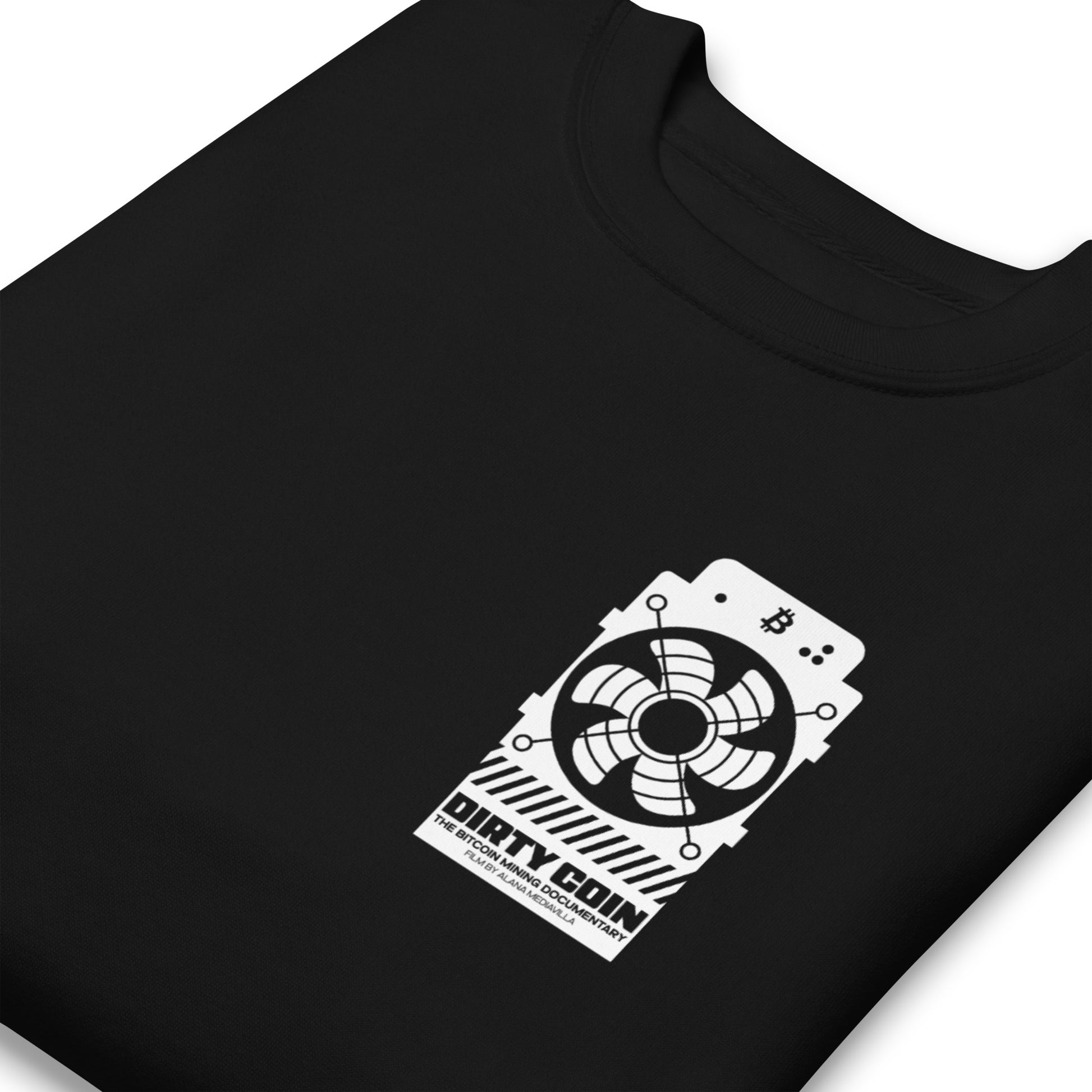 This sweater features the Dirty Coin 2024 festival poster design on the left breast, and a tidy CPU fan emblazoned on the upper back. Soft fleece inside, with a comfortable fit – 65% ring-spun cotton, 35% polyester garment sourced from Pakistan.